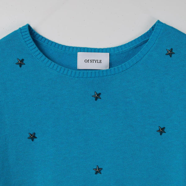 前身頃に星型スタッズをあしらったニットプルオーバーです。