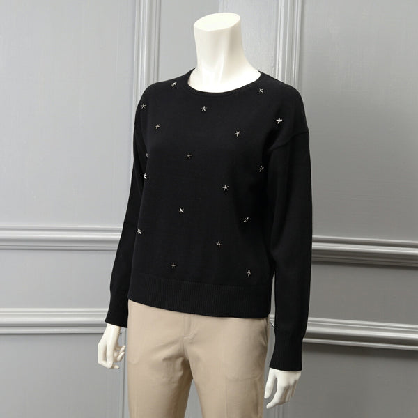 【手洗い可】スタースタッズ付き ニット プルオーバー