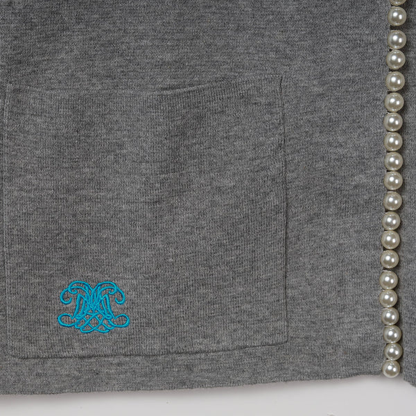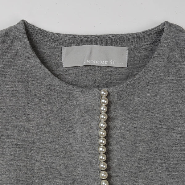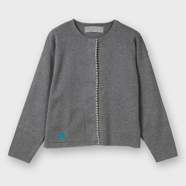 フロントに施されたパールが目を惹くカーディガン。