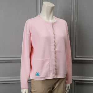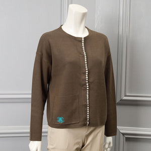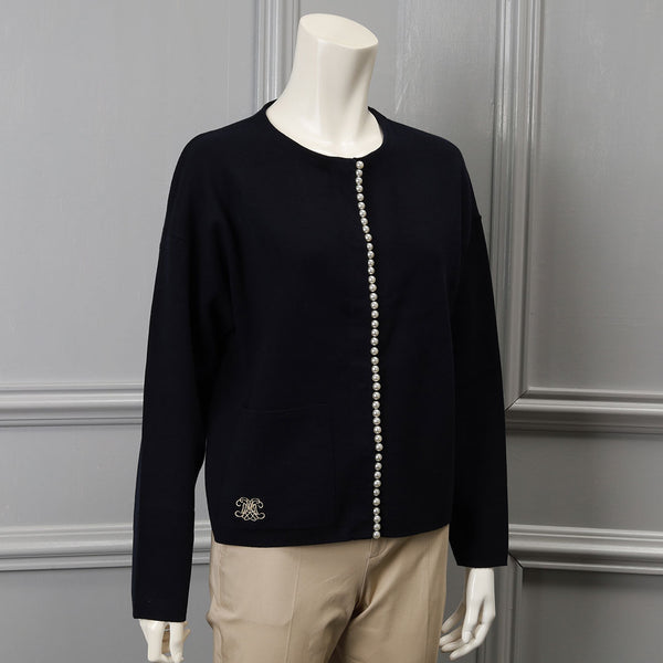 【手洗い可】パール ライン クルーネック カーディガン