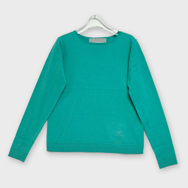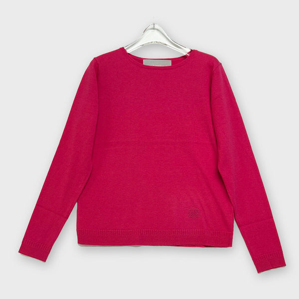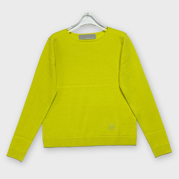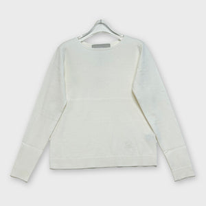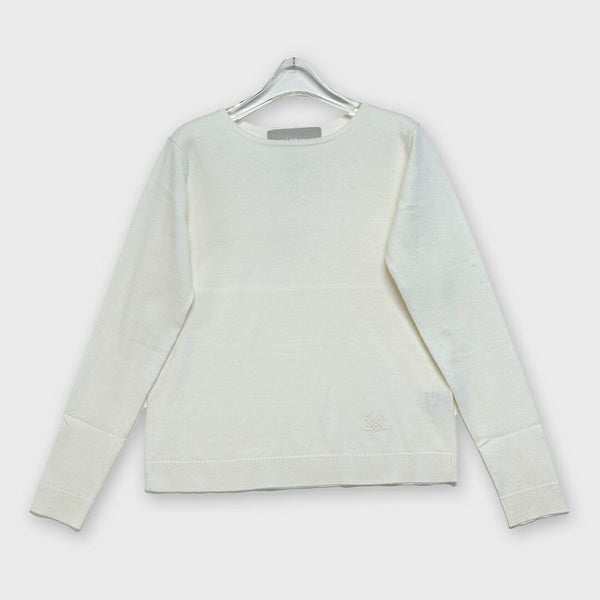 すっきりとした衿ぐりがデコルテをきれいに見せてくれながらも上品さをキープしてくれるニットプルオーバーです。