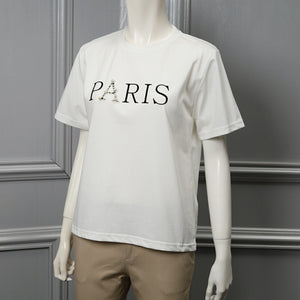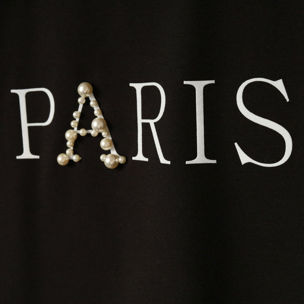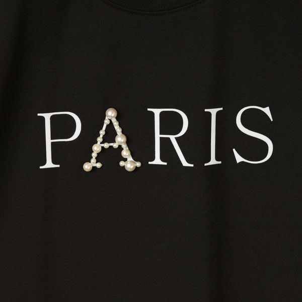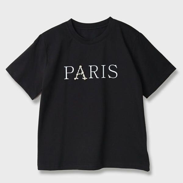 【手洗い可】PARIS ロゴ ビジュー Tシャツ