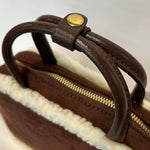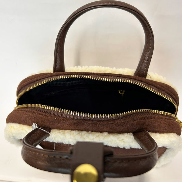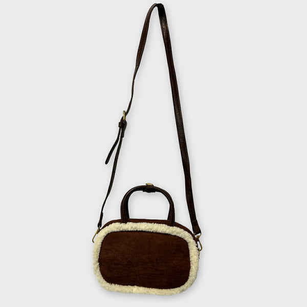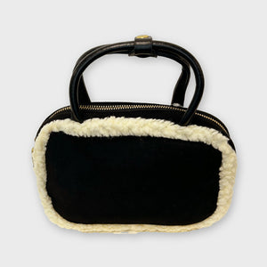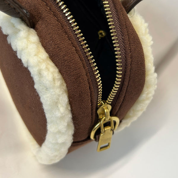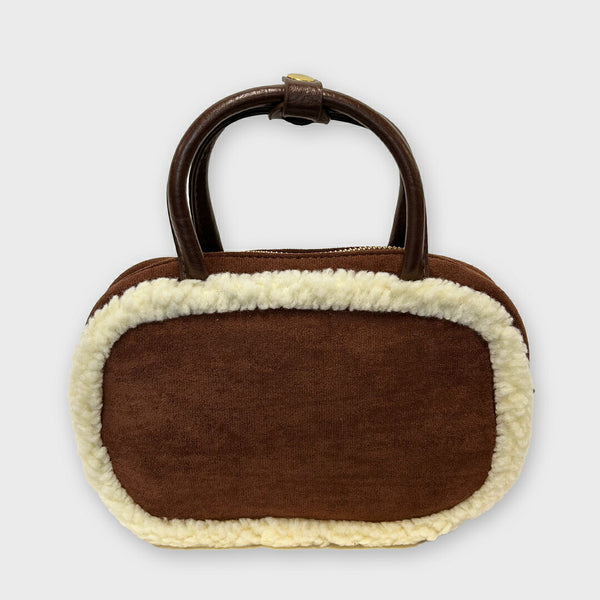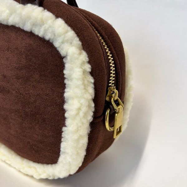 縁にボア素材が施されたショルダーバック。
