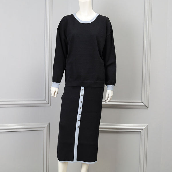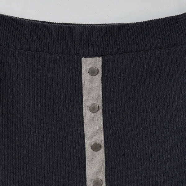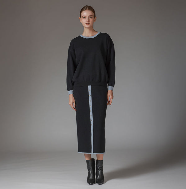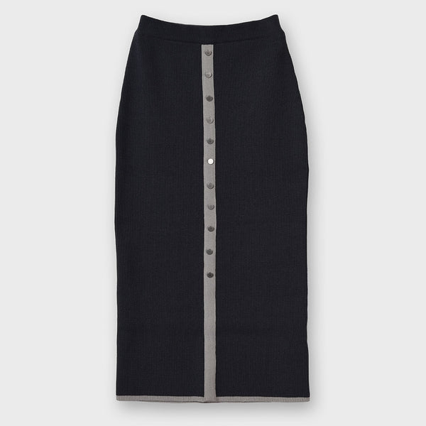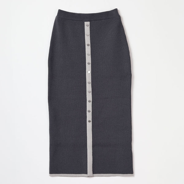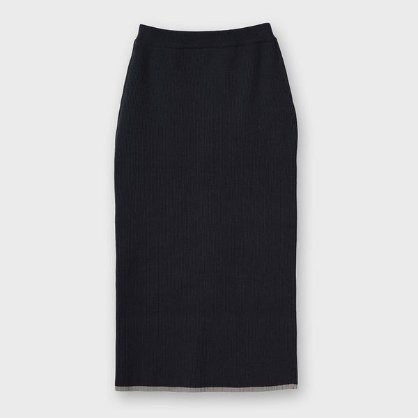 スカートは、リブ編みならではの表情が楽しめる、すっきりとしたナローシルエット。