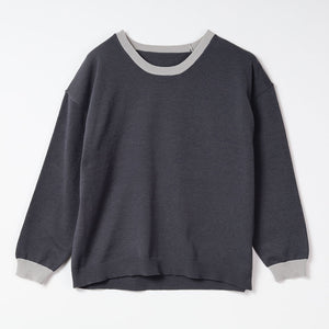 トップスは、配色ラインがアクセントになったシンプルなクルーネックデザイン。