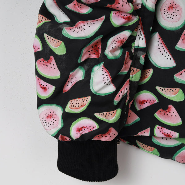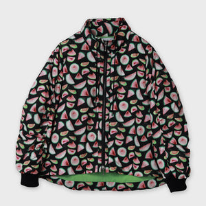 スイカの柄が目を惹く中綿ブルゾンです。