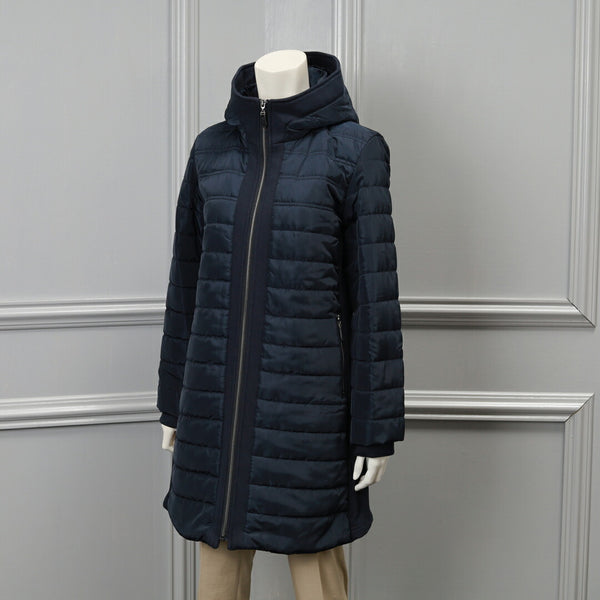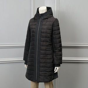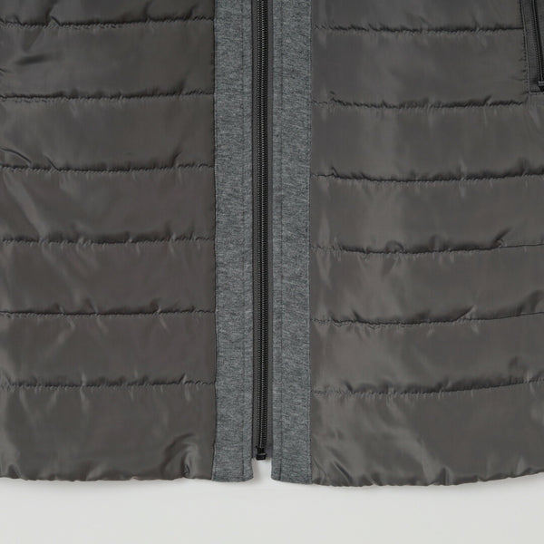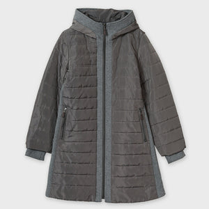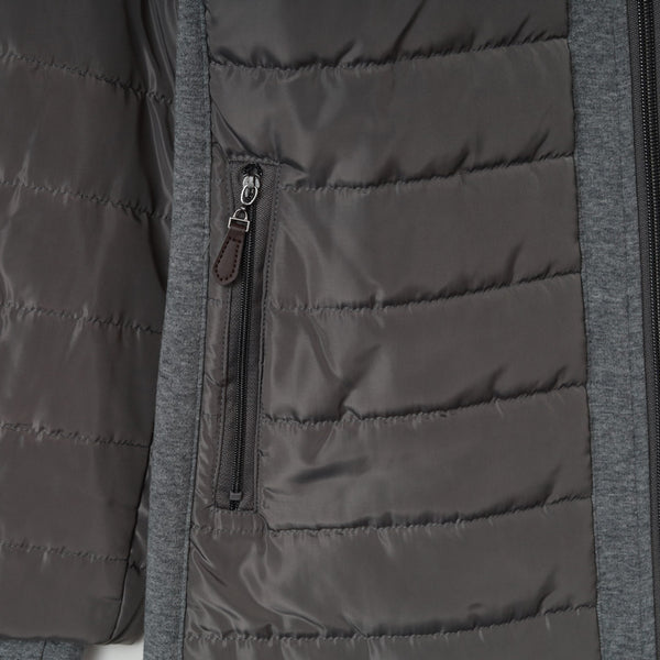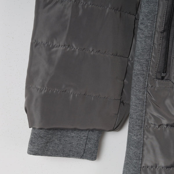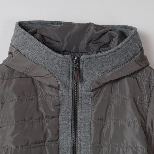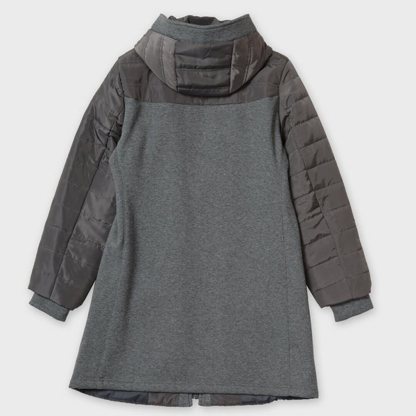 しっかりとした厚みの裏起毛素材と、中わたキルト生地を切り替えたコート。