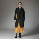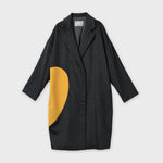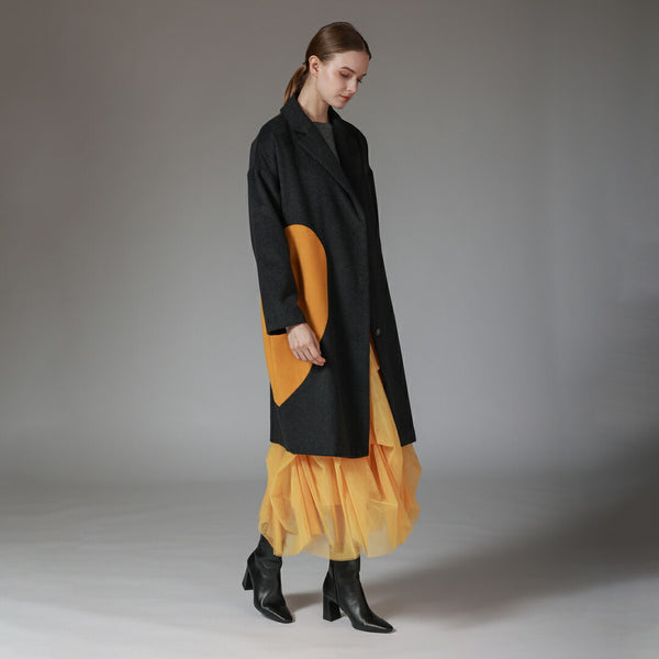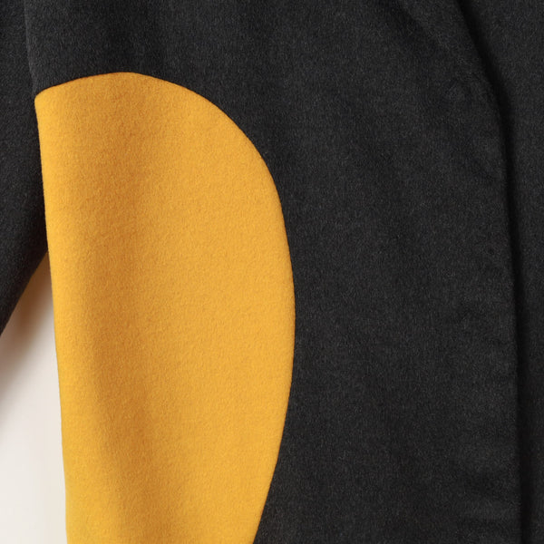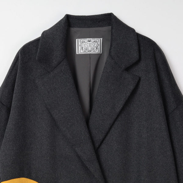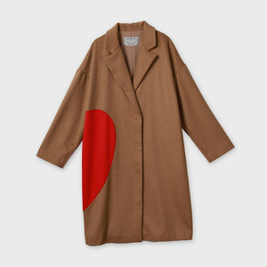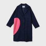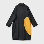サイドには配色使いの半分のハートが施され、横から見るとハートが完成する、ユニークで印象的なアウター。
