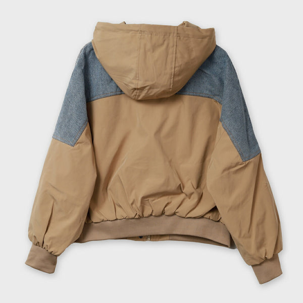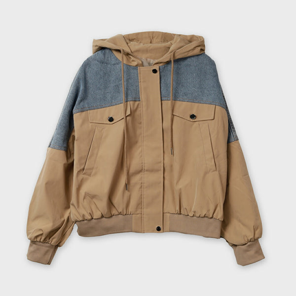 デニムを組み合わせた異素材デザインが魅力のブルゾン。