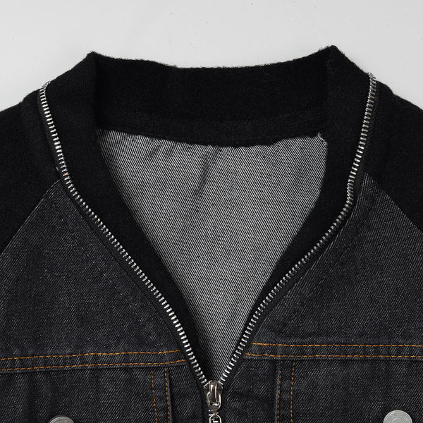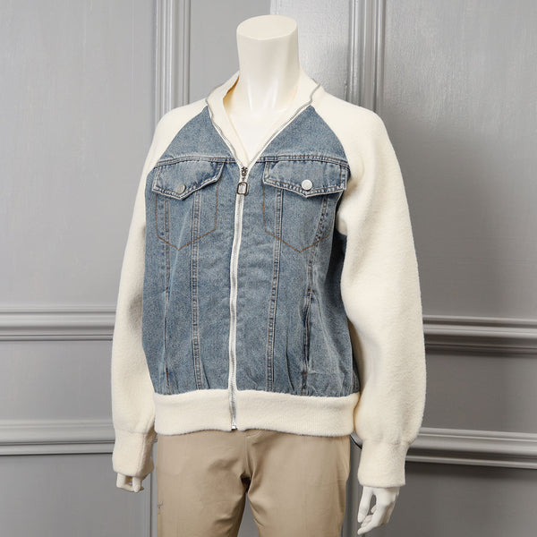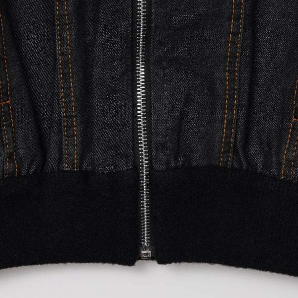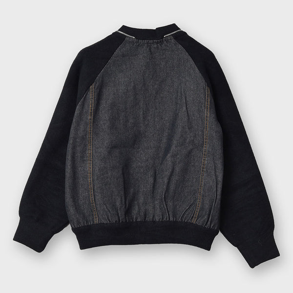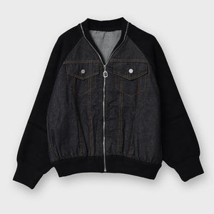 柔らかい圧縮ニットとデニムの異素材ミックスブルゾンです。