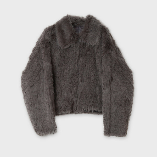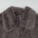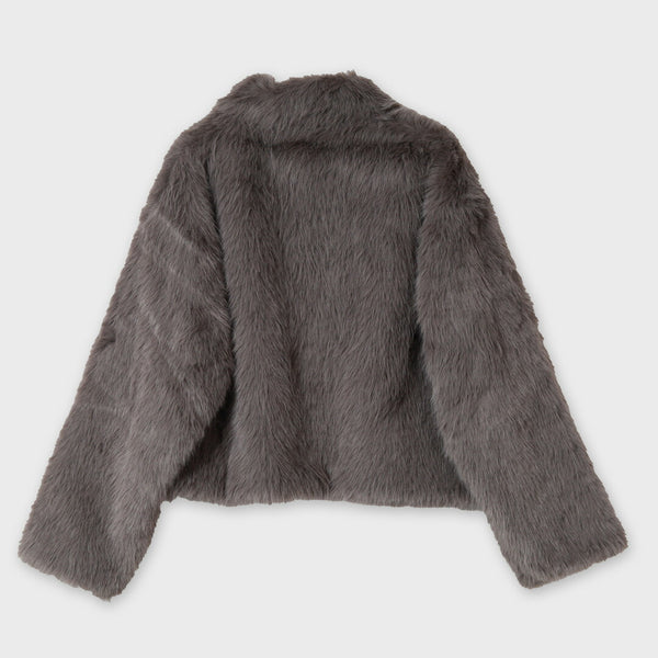 毛足の長い、ふわふわの柔らかな手触りのエコファーが、羽織るだけでコーデを大人っぽく格上げしてくれます。