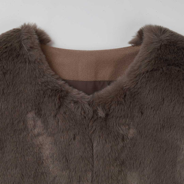 使用しているエコファーは高級感があり、着こなしにラグジュアリーな雰囲気をプラス。