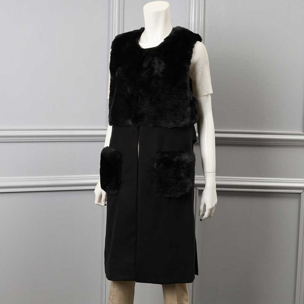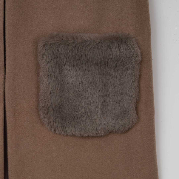 身頃とポケット部分のファー使いがポイントのロングジレです。