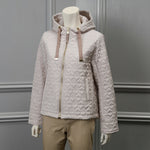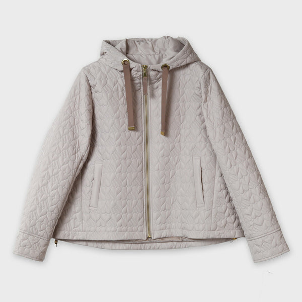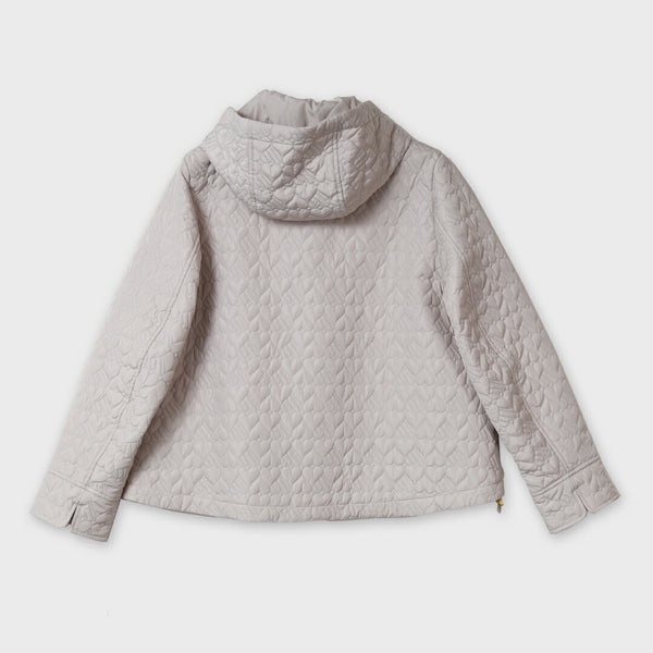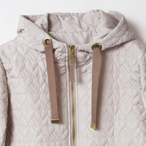 あたたかなキルティング生地で仕立てたフード付きコート。