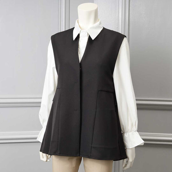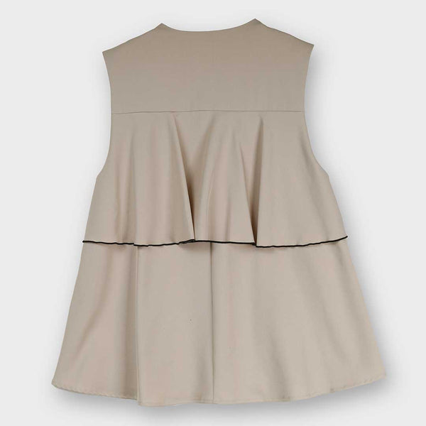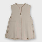 美しいフレアシルエットが魅力的な、Vネックベストです。