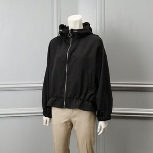 【手洗い可】裾フリル ジップアップ フード付き ブルゾン