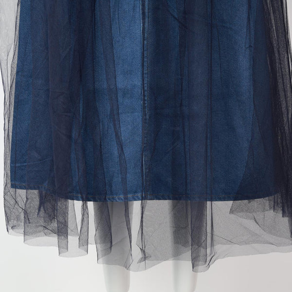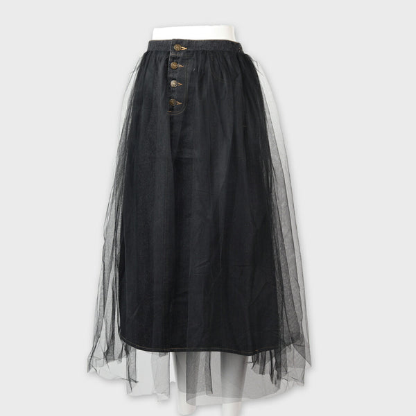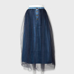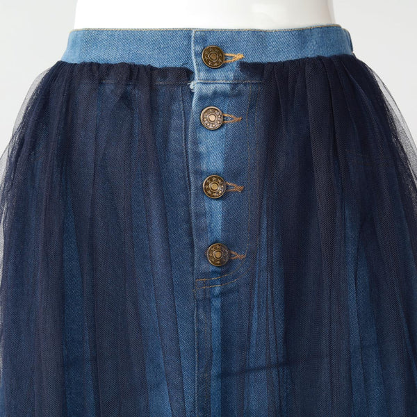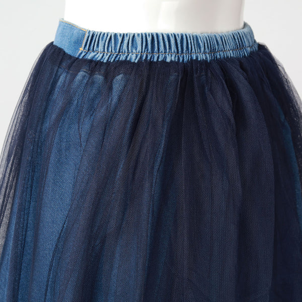【手洗い可】チュールレースドッキング デニムスカート