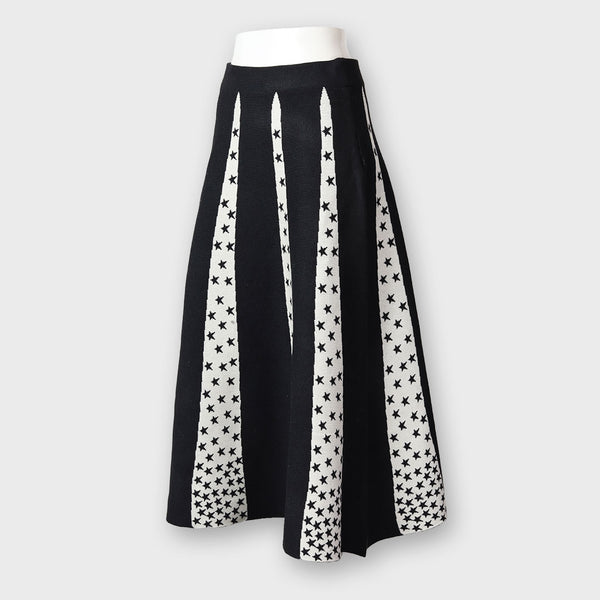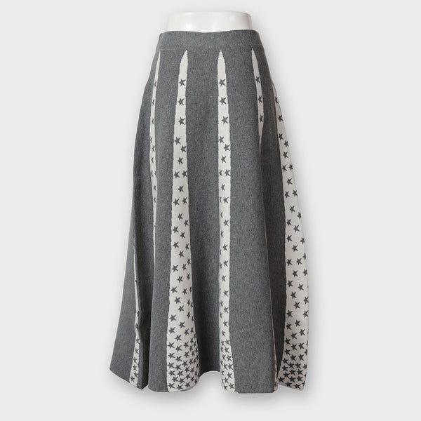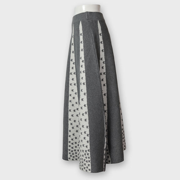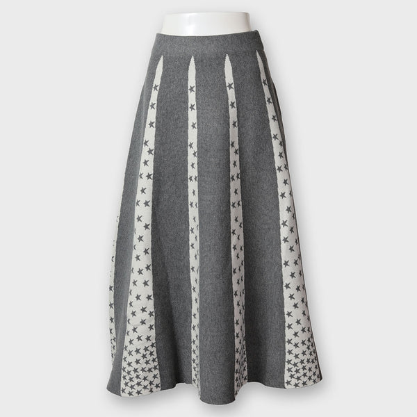 縦ラインの星柄が一気にこなれ感を出してくれるニットスカート
