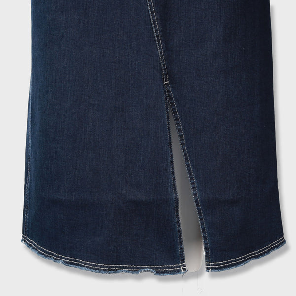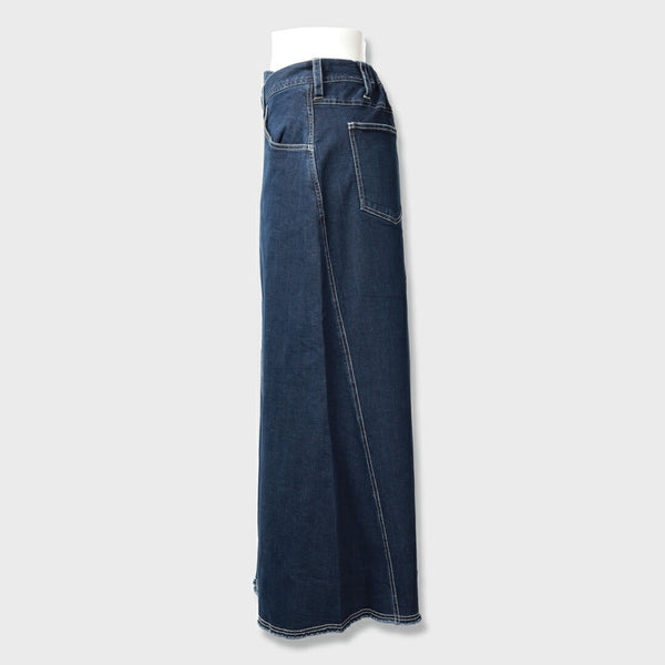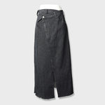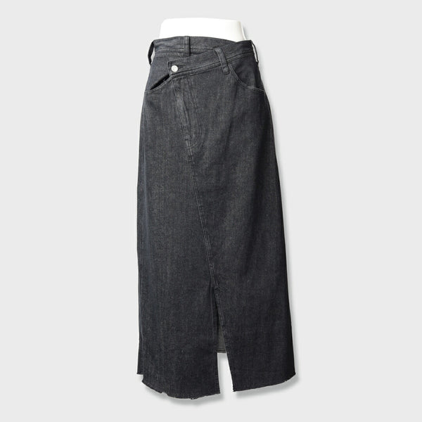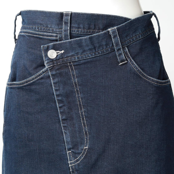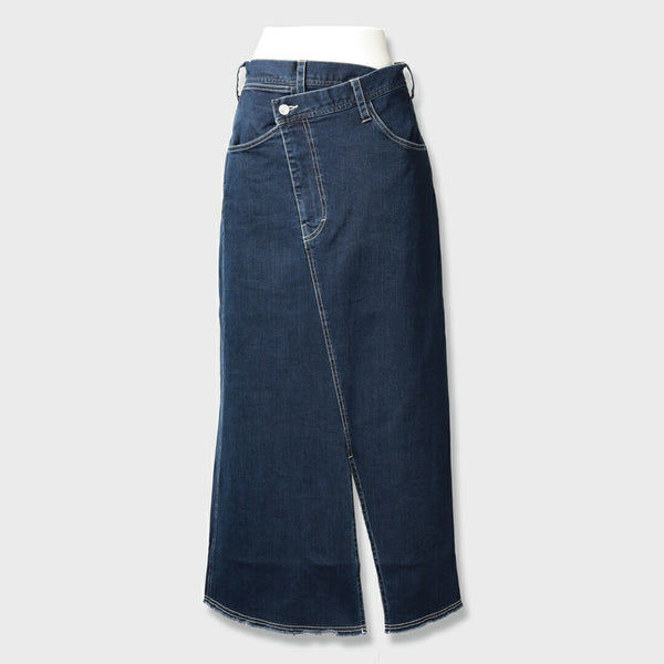 こなれ感のあるスタイリングが1枚で完成する、クロスウエストデザインのデニムスカート。