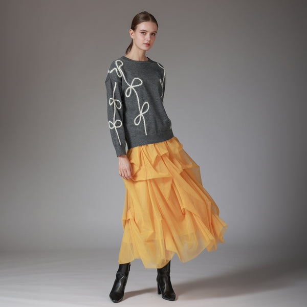 ふわっと立体的に広がるボリューム感がかわいいスカート。
