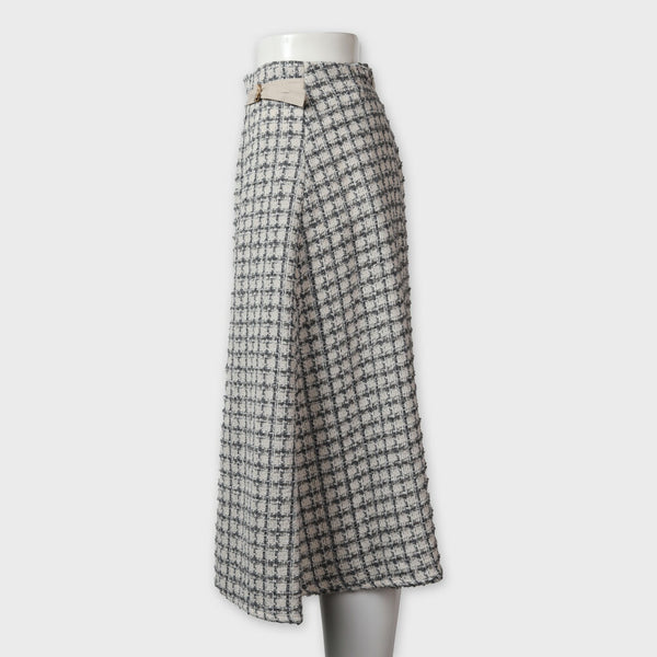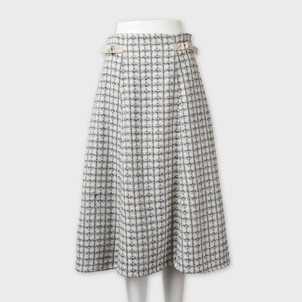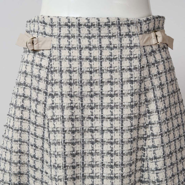 程よく広がるフレアシルエットが美しいツイードスカート。