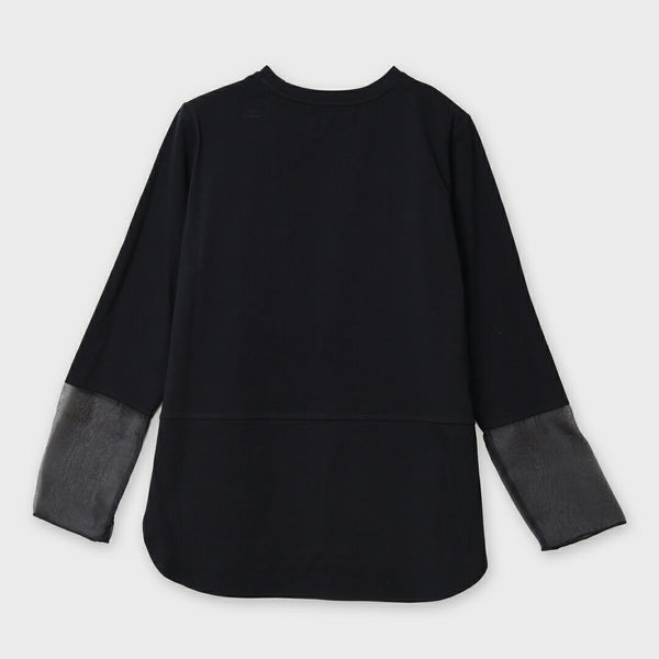 袖口がシースルー素材で切り替えられたデザインのトップスです。