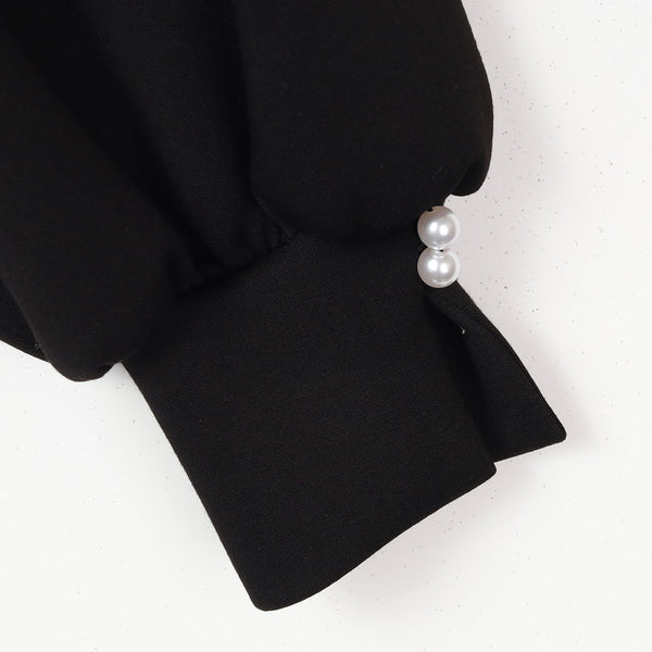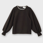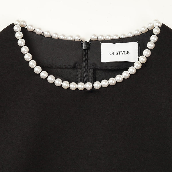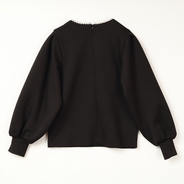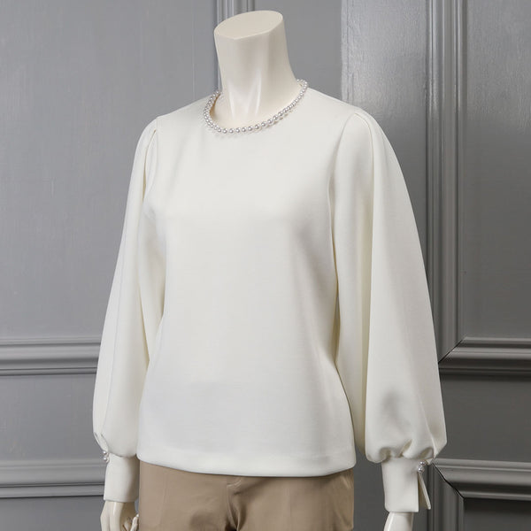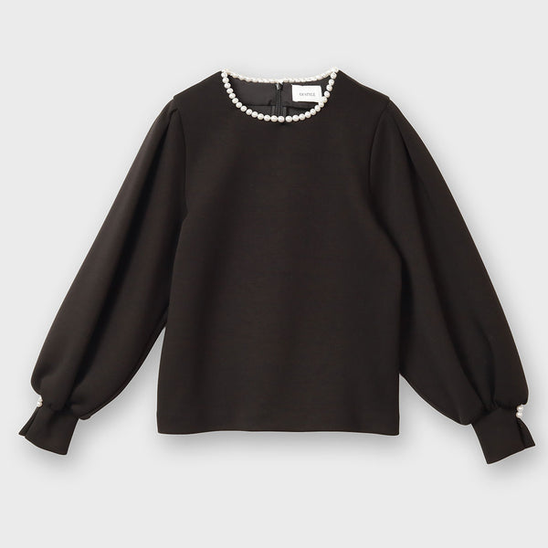 ネックラインにあしらったパールが上品なアクセントのプルオーバー。