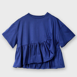 動きに合わせて揺れるアシンメトリーなフリルが特徴のプルオーバーです。
