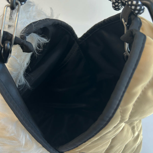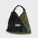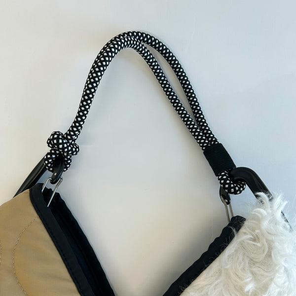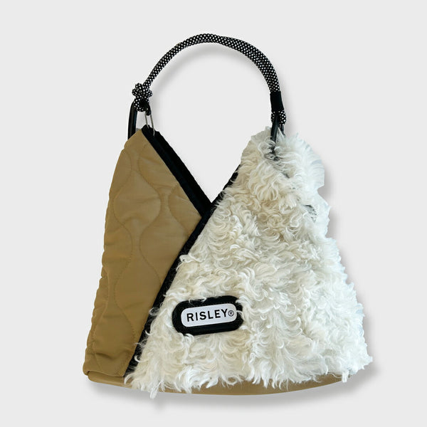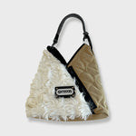エコファーとキルトの異素材を組み合わせることで、バッグに立体感と深みを与えています。