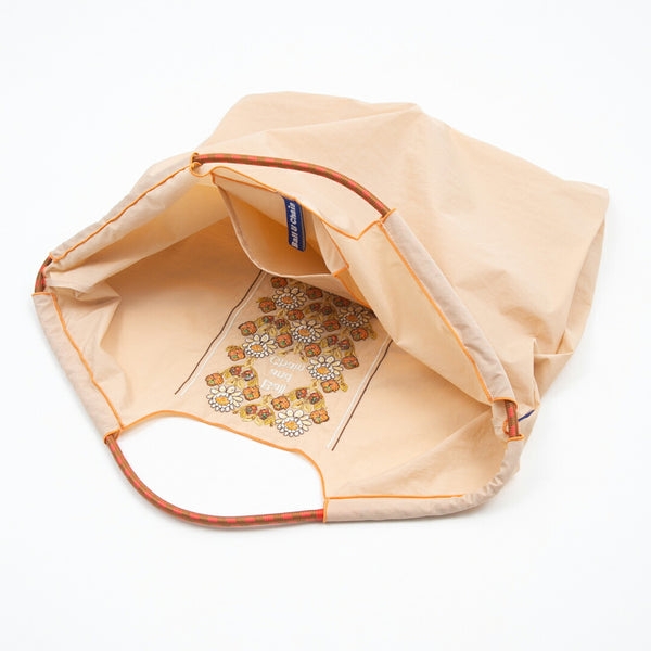耐久性、撥水性に優れた厚手のポリエステル素材に、 グラフィックデザインをそのまま「刺繍」で施すことで、 高級感がありデザイン性の高いバッグとなっています。