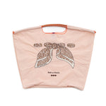 耐久性、撥水性に優れた厚手のポリエステル素材に、 グラフィックデザインをそのまま「刺繍」で施すことで、 高級感がありデザイン性の高いバッグとなっています。