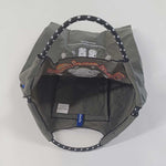 丸く折りたたみ付属のゴムバンドでとめると手のひらほどの コンパクトサイズになるため、持ち運びにも便利です。