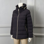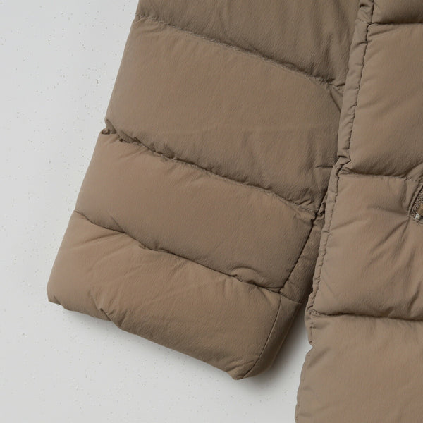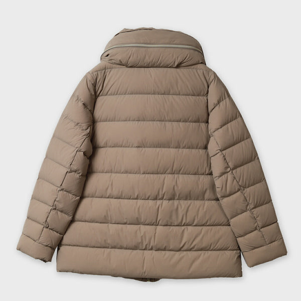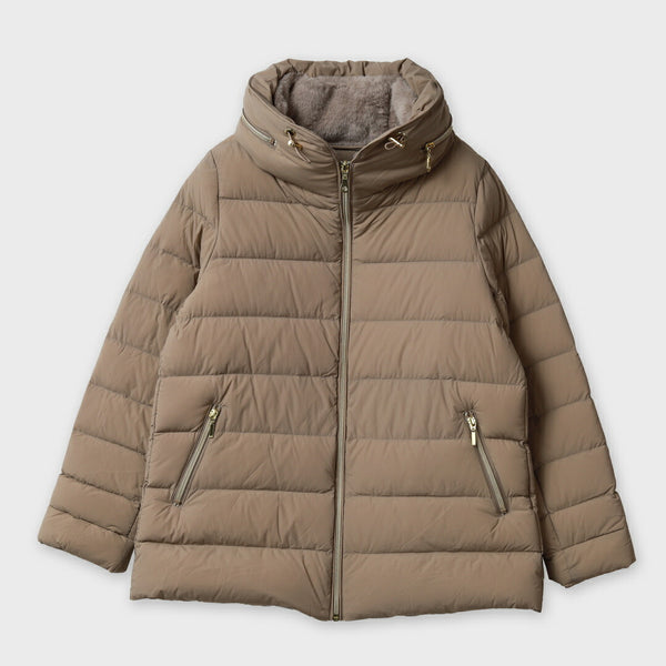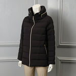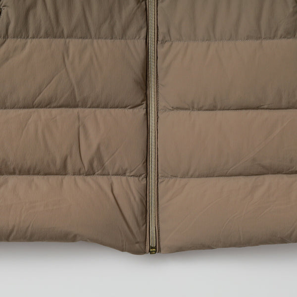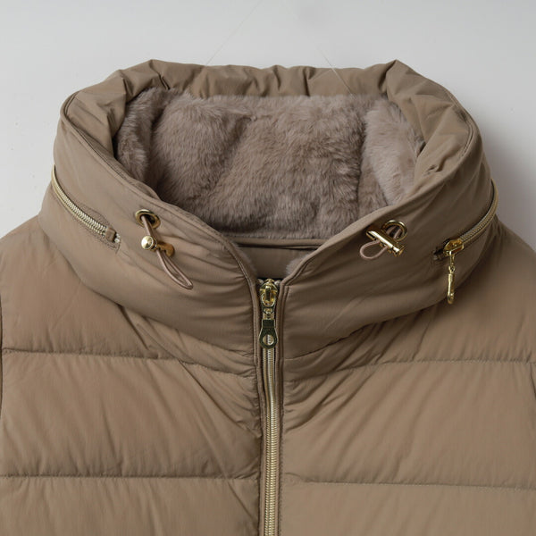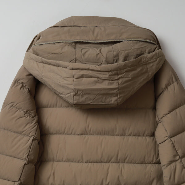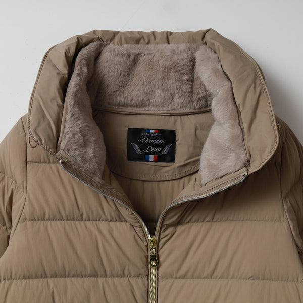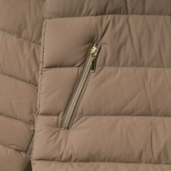 ゴールドのファスナーが高級感漂うダウンジャケットです。