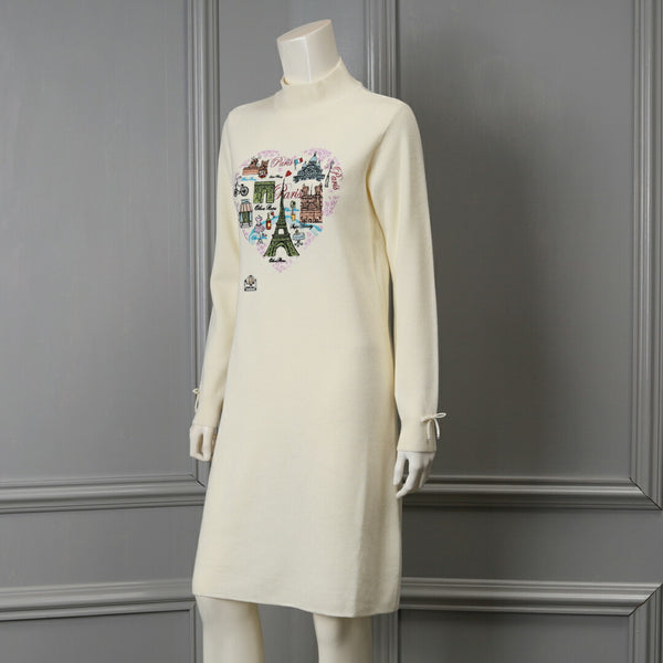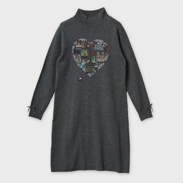 胸元Paris刺しゅう入りデザインがポイントのニットワンピースです。