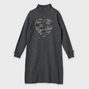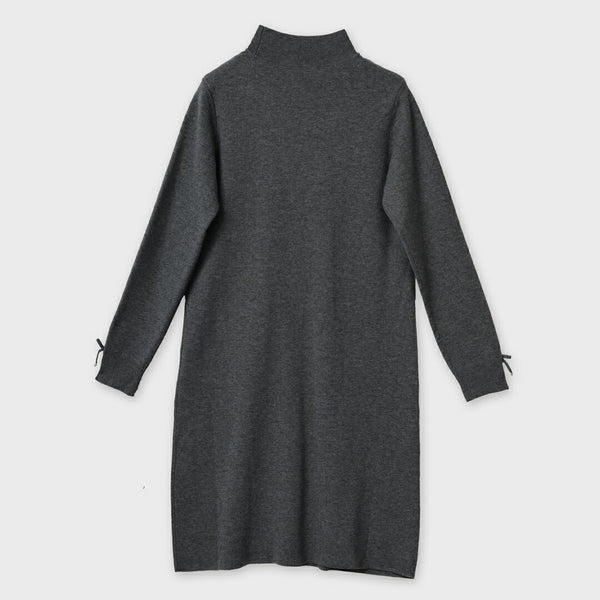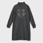 胸元Paris刺しゅう入りハイネックニットワンピース