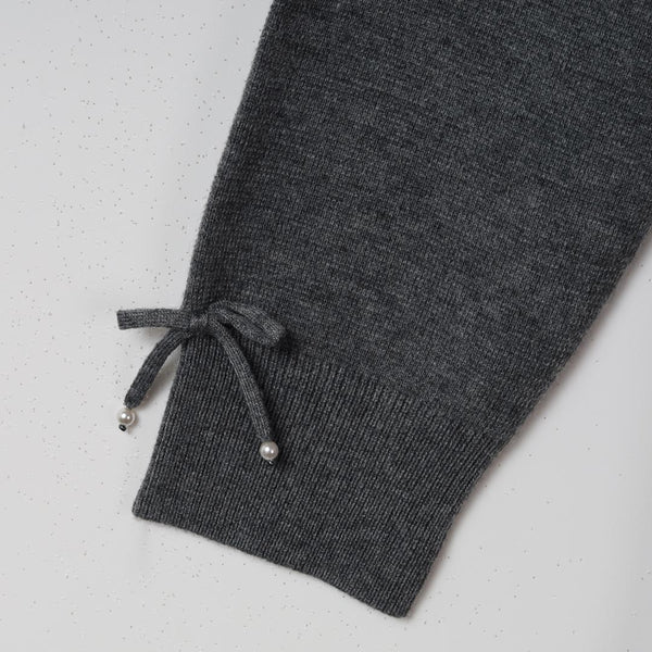 ハイネックで温かさも兼ね備え 袖先にはキュートなリボンが施されており、細部にまでこだわったデザインが魅力的です。