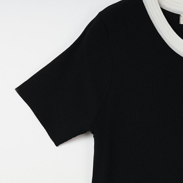 流れるような落ち感のあるニット素材が、シルエットを穏やかに整え、ふんわりと身体を包み込みます。