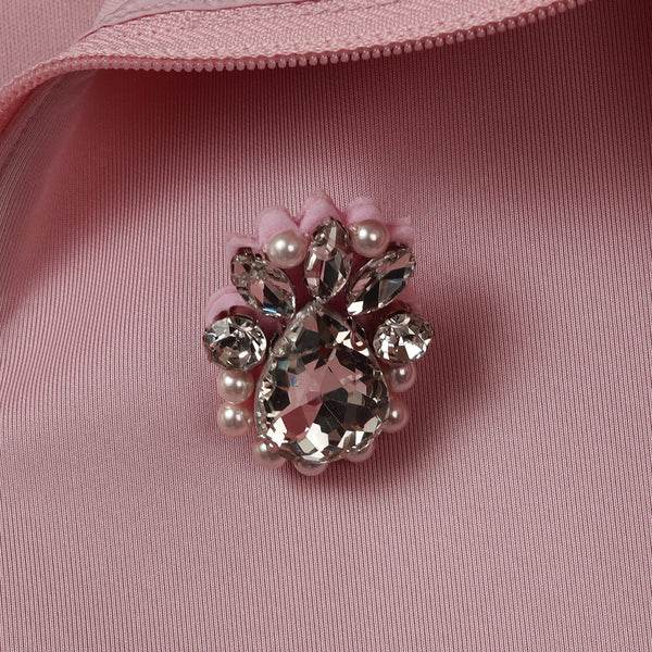 また、胸元には控えめなビジューモチーフを添え、さりげない華やぎを演出します。