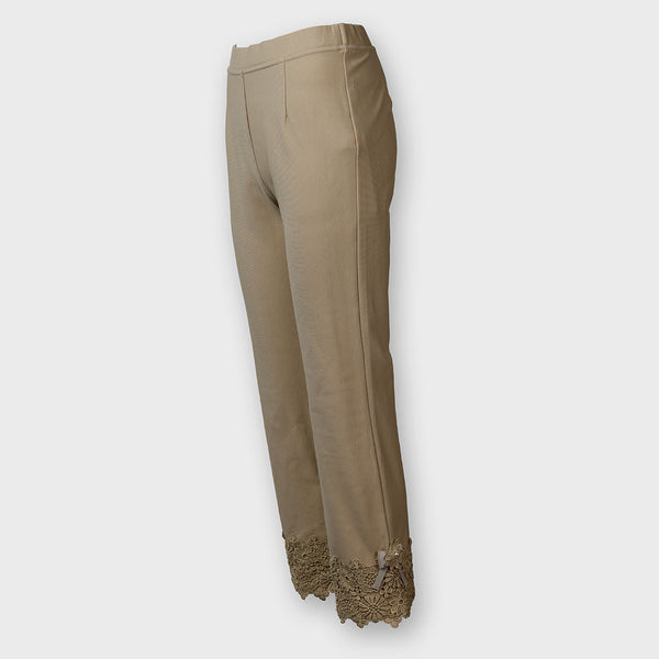 寒い季節にもぴったりの裾レース×リボン使い裏起毛パンツ。
