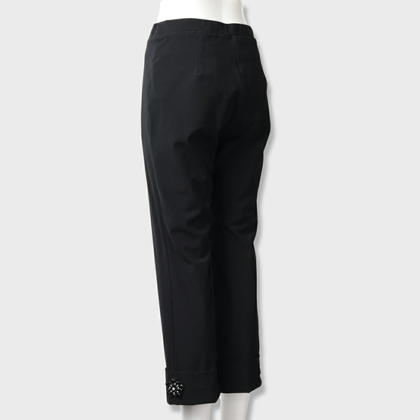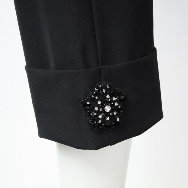 裾のサイドには美しい花型ビジューが施され、さりげない華やかさを演出します。