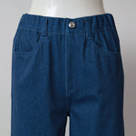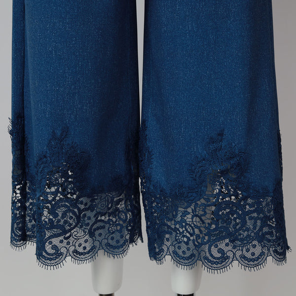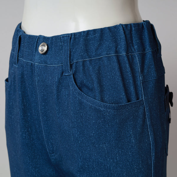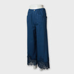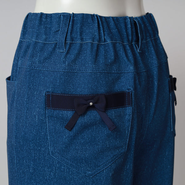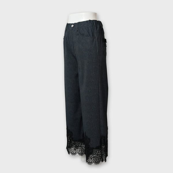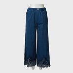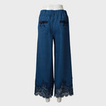 裾レースデザイン デニム風 ストレッチ パンツ