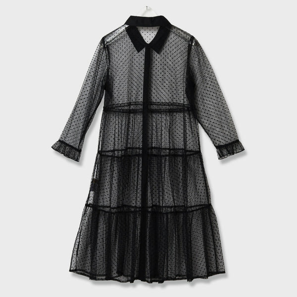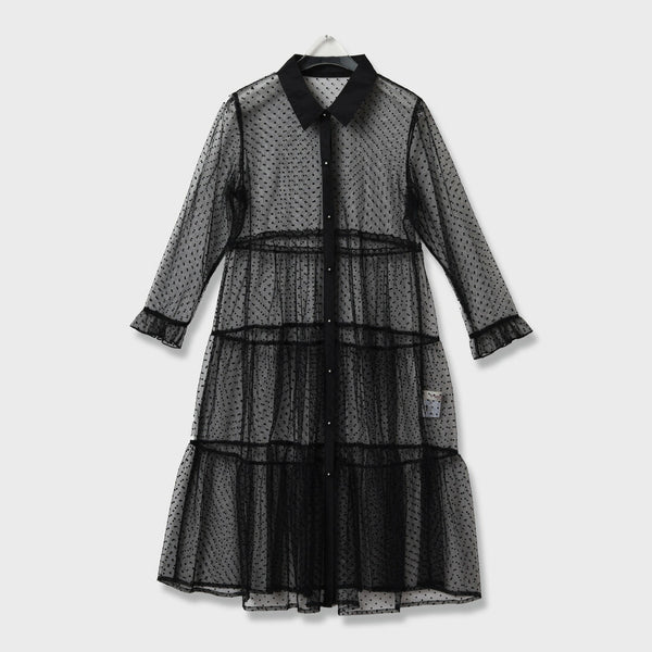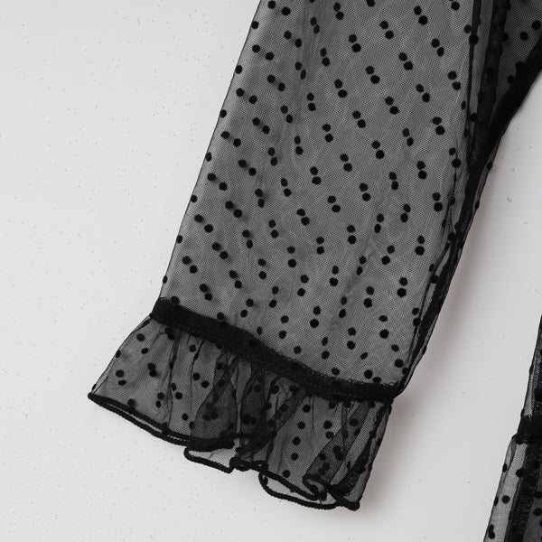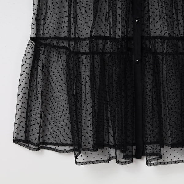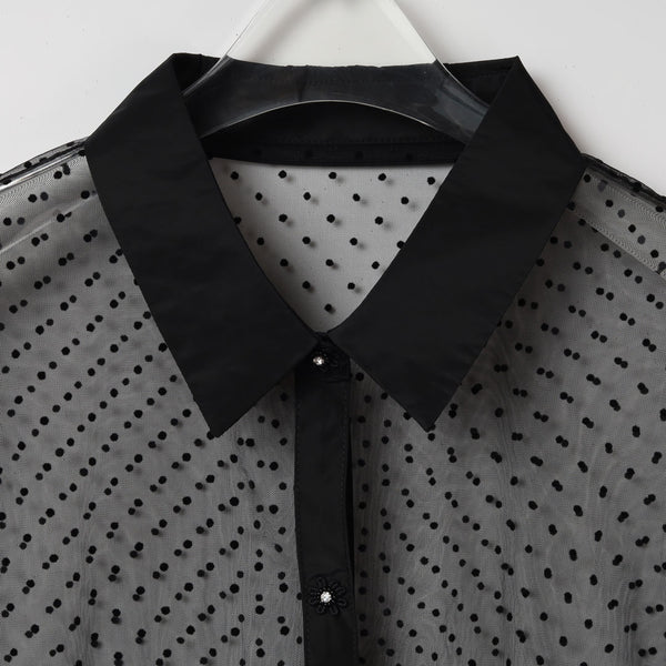 かわいらしいドット柄と襟付きデザインが他にはない特別感を醸し出し、七分袖のシルエットが腕の動きを美しく見せてくれます。