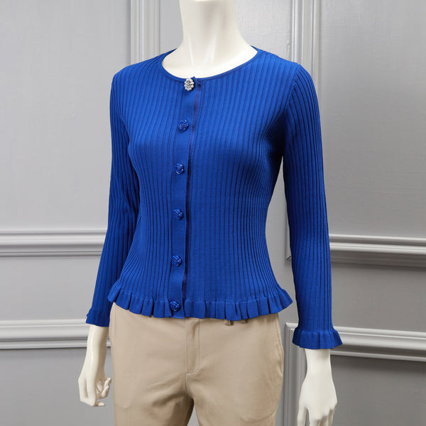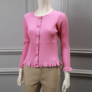 裾フリル リブ編み ニット カーディガン