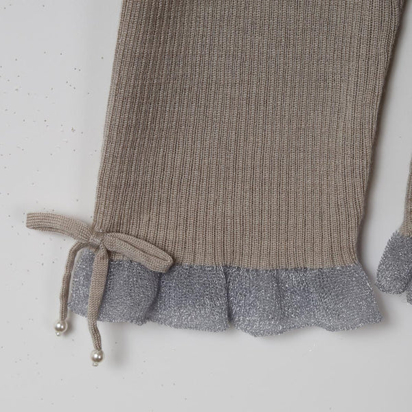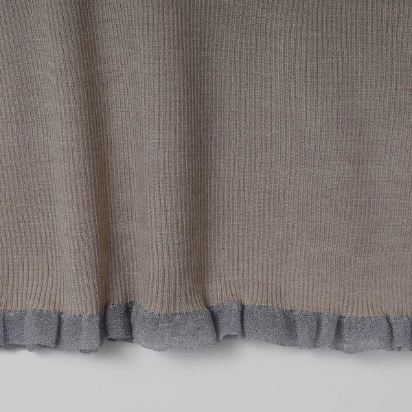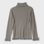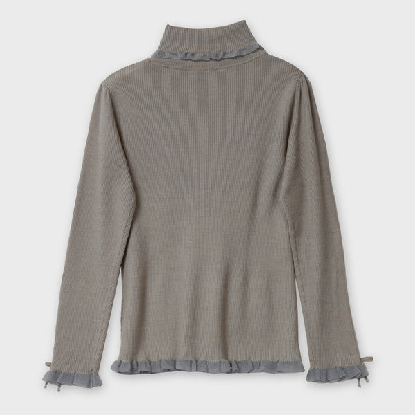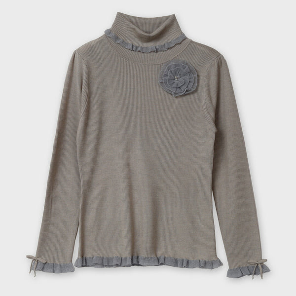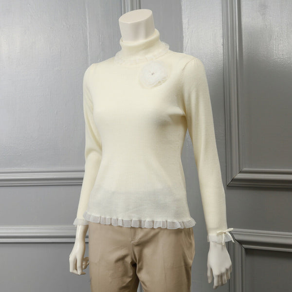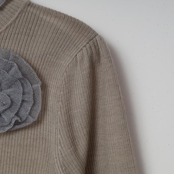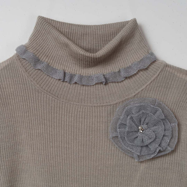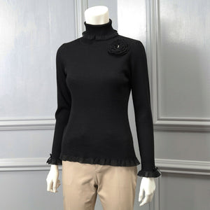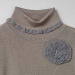 コサージュ付 衿 袖先透かしフリルデザイン タートルネックセーター