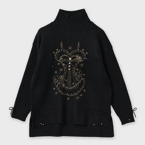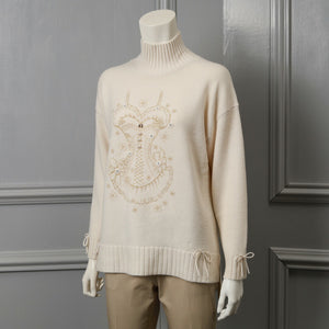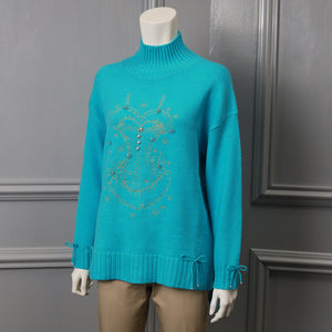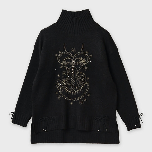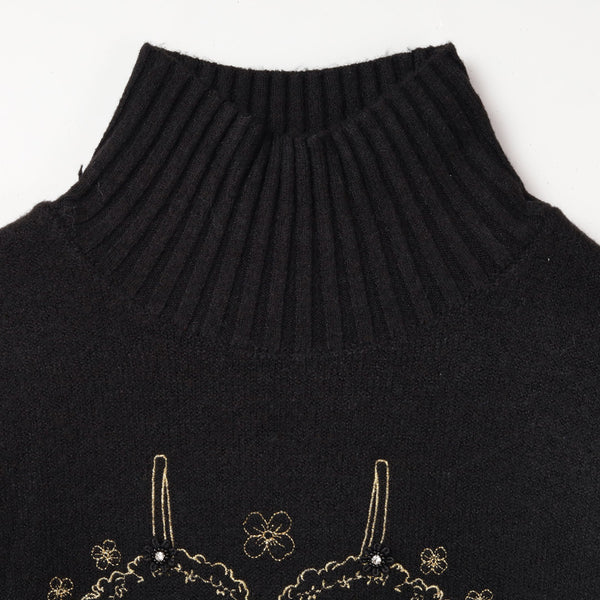 華やかな胸元刺しゅう入りハイネックセーターです。