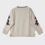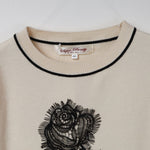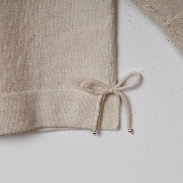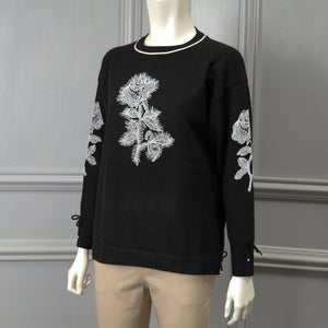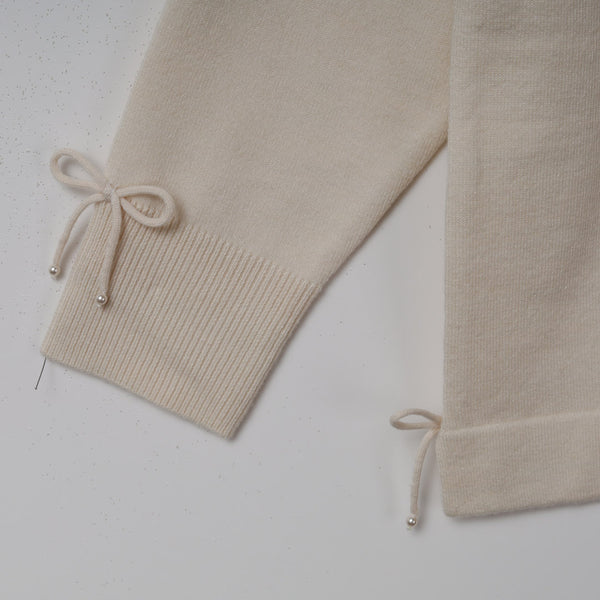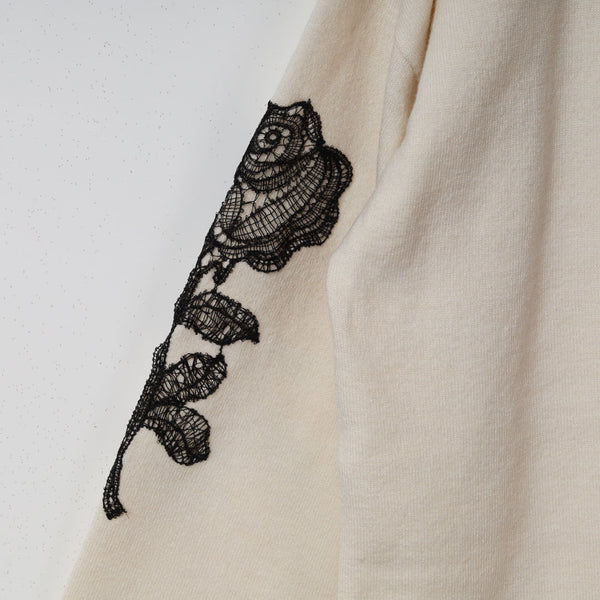 ネック部分の配色がレースとのコントラストを生み出し、洗練されたデザインになっています。