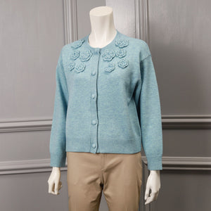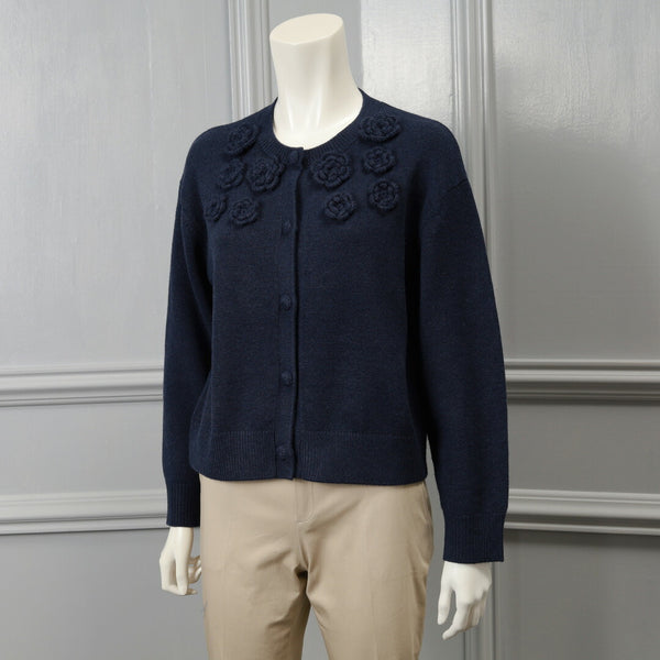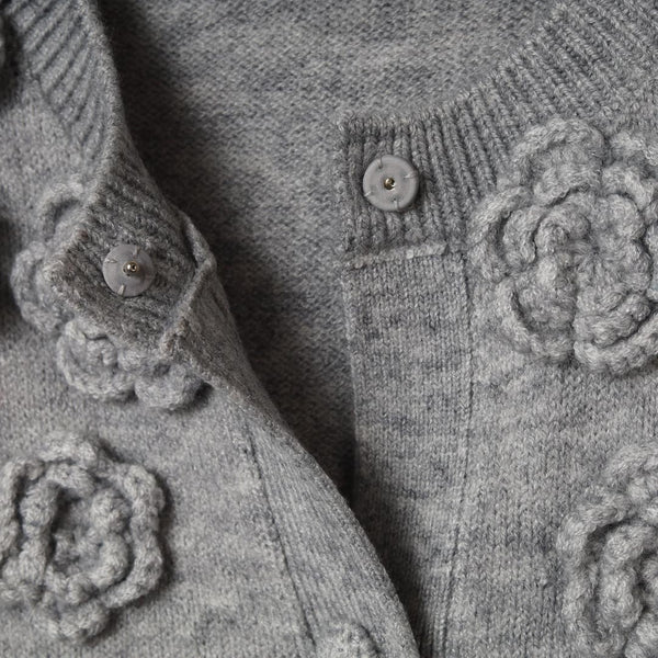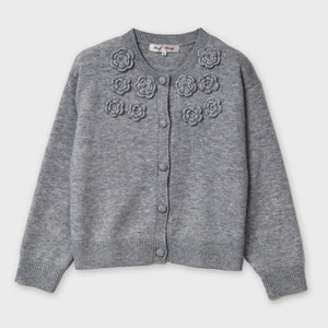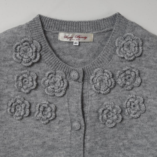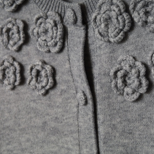胸元花モチーフ付ニットカーディガン