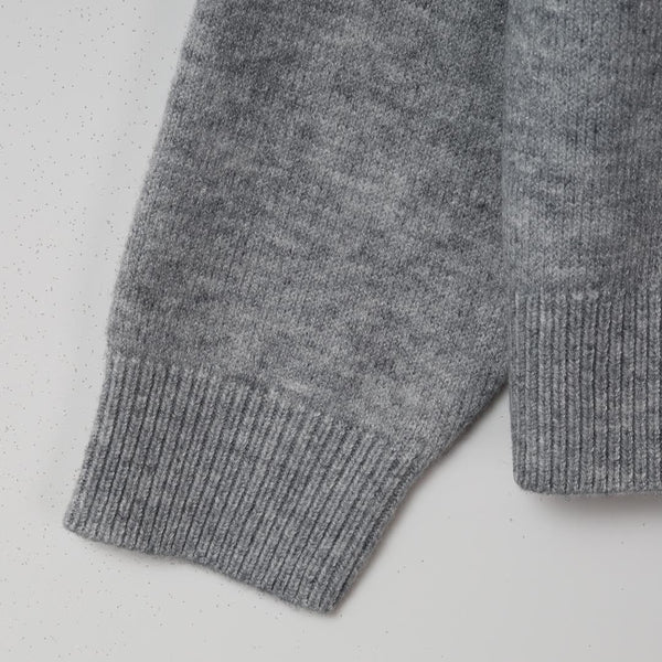 ニットは杢調で、一見すると無地に見えますがよく見ると濃淡の色が混ざり合った深みのある独特な表情の素材です。