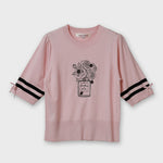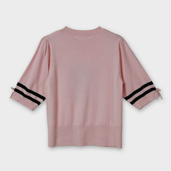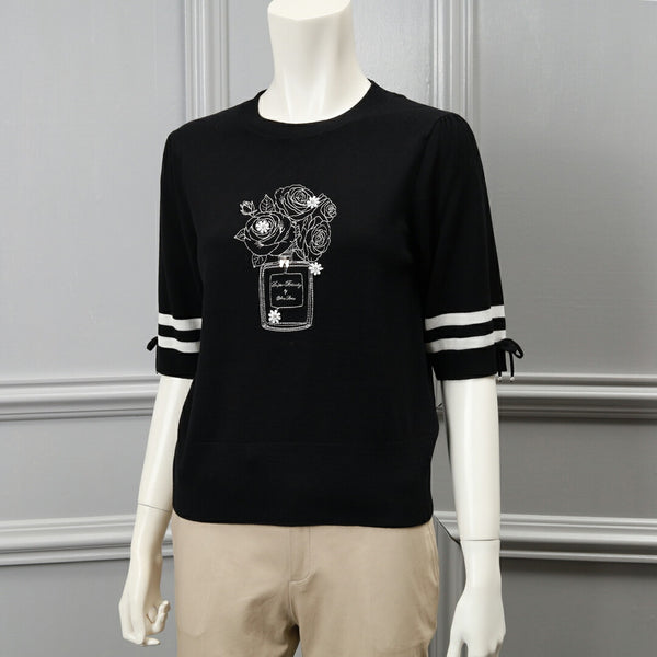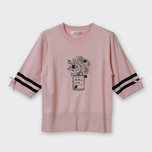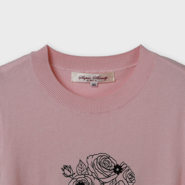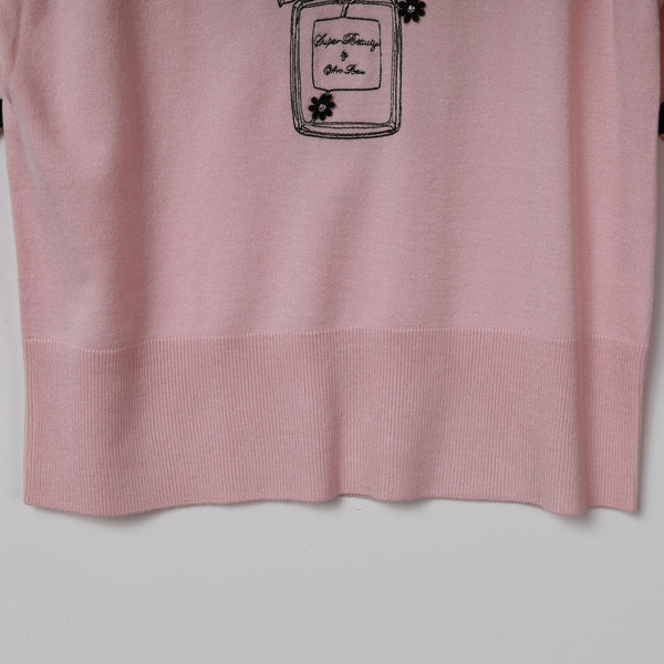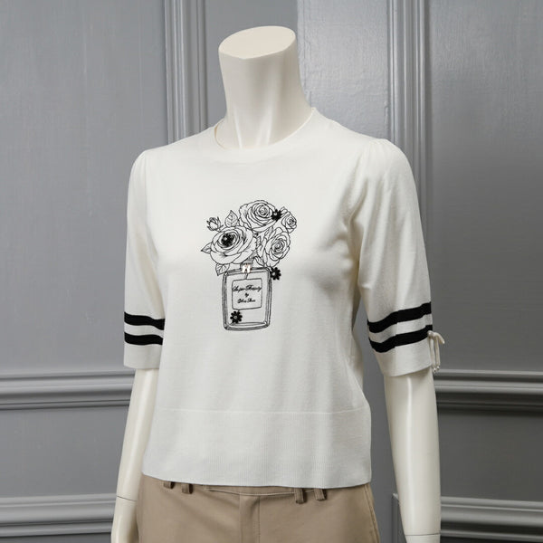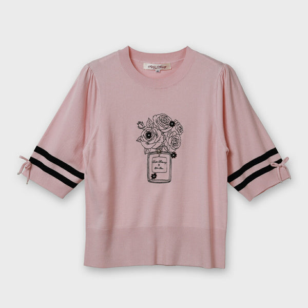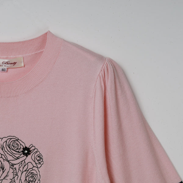 胸元バラ刺しゅう入りの半袖セーター