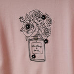 華やかなバラと香水瓶の刺繍が目を惹く、上品で女性らしさ漂うセーターです。